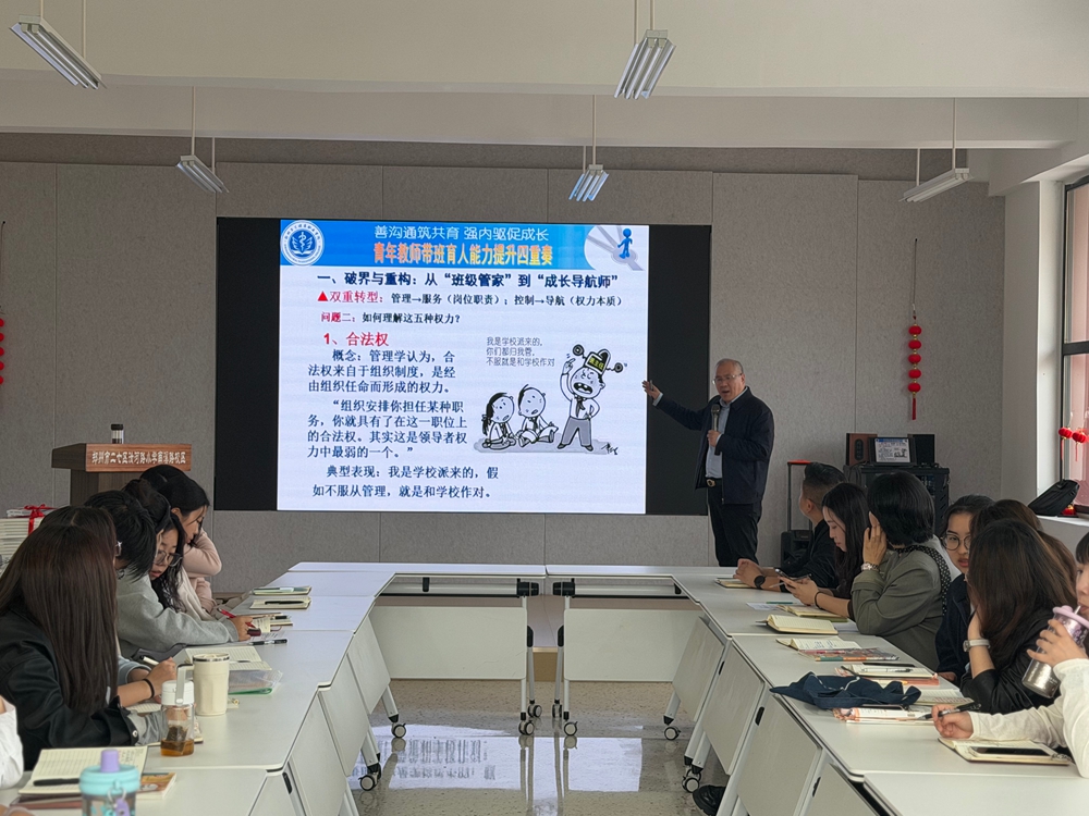 本次培训特邀全国知名德育专家涂俊礼老师到校专题授课。培训中,涂俊礼老师围绕青年教师带班育人能力四重奏展开系统分享。内容紧扣一线教育实际,分别从破界与重构:从“班级管家”到“成长导航师”;关系与共鸣:构建亦师亦友的成长共同体;洞察与赋能:读懂学生行为背后的密码;同盟与共育:家校沟通的“三明治”艺术四个方面,层层剖析新时代班级管理与家校沟通的工作方法与实操策略。