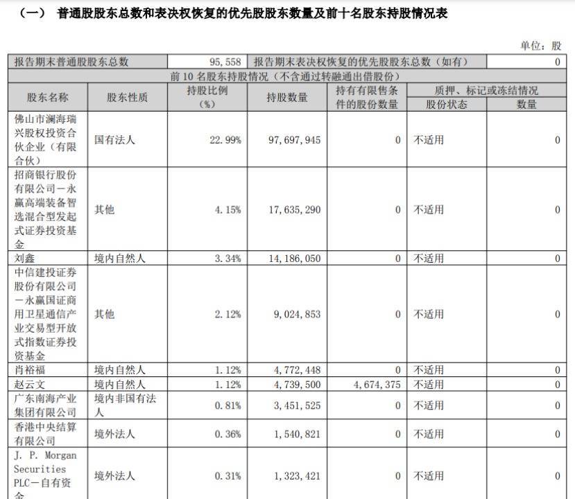 据天银机电公告,截至2026年3月末,其第三大股东为境内自然人刘鑫,持股数量为1418.605万股,持股比例为3.34%。若按4月22日收盘价66.2元/股计算,持股市值约为9.39亿元;另外,该公司第五、第六大股东均为自然人,分别为肖裕福、赵云飞,持股数量分别为477.24万股、473.95万股。