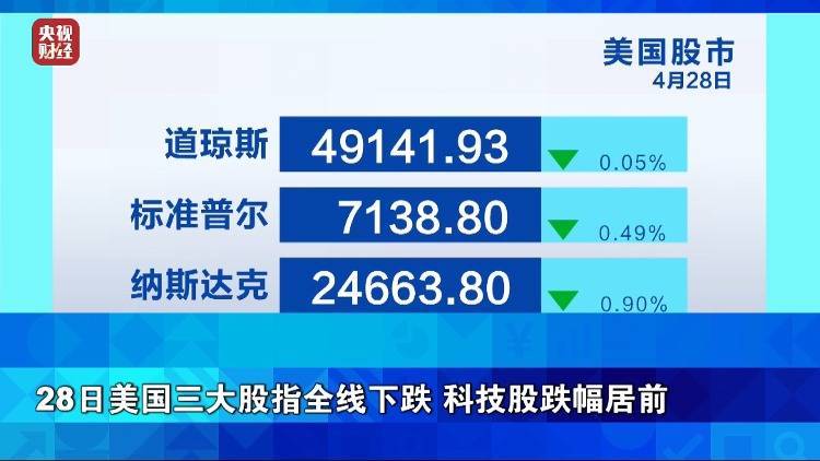 28日美国三大股指全线下跌 科技股跌幅居前