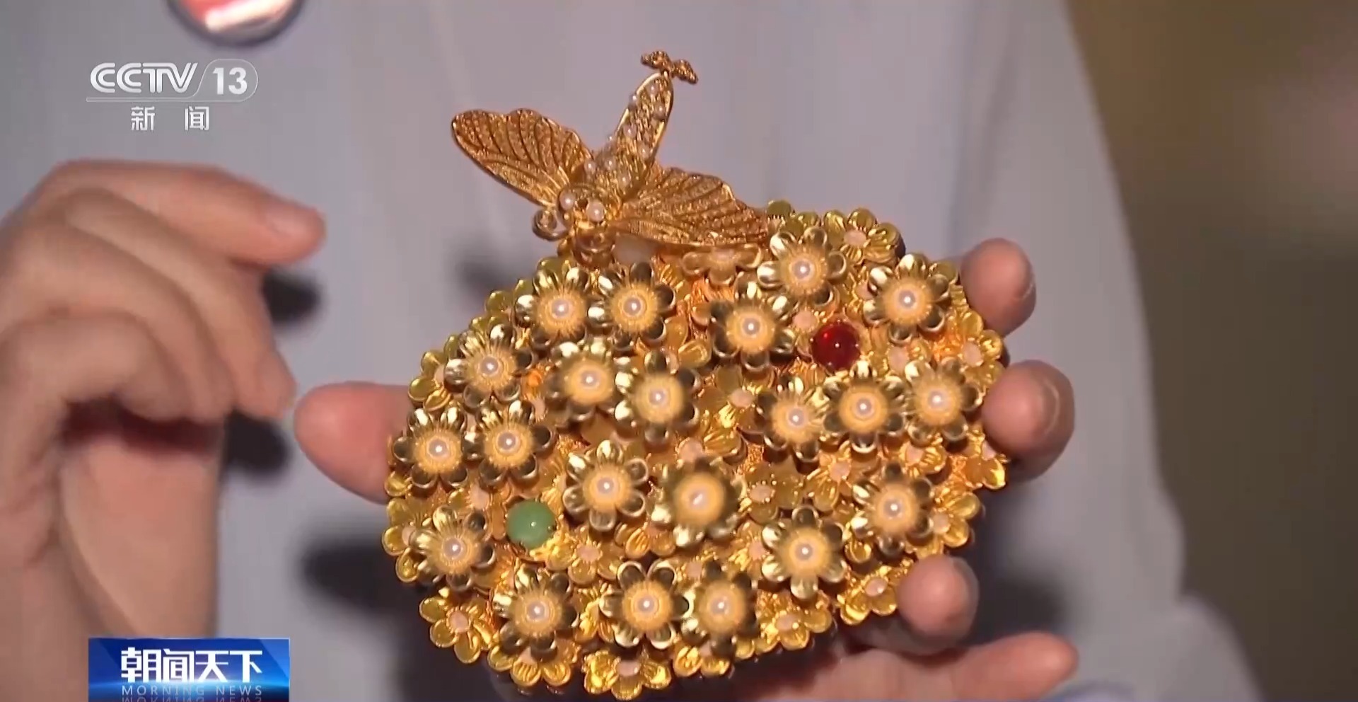 而最顶部就是这只金丝嵌珍珠飞蛾。