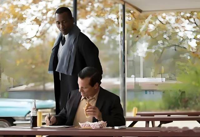 2023年孟菲斯博物馆,玻璃展柜里泛黄 的《绿皮书》第88页,铅笔标注的伯明翰黑豹旅馆旁贴着两张电影剧照,维果·莫特森攥着方向盘青筋暴起,马赫沙拉·阿里的指尖悬在琴键上方。